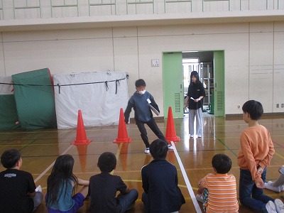 運動委員会の子どもたちが見本を見せたり、ポイントをわかりやすく説明したりしてくれます。