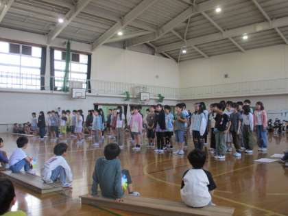 4年生は朱三のいいところを伝えるために○×クイズを考えて発表しました。1年生がクイズを楽しんでくれたことで、4年生のみんなも達成感を得られたようです。終わった後はとってもいい笑顔でした。