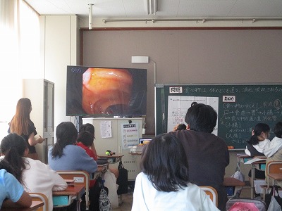 自分の体にも関わることで、普段絶対に見ることのない体の中ということあって、子どもたちはとても興味をもって見ていました。