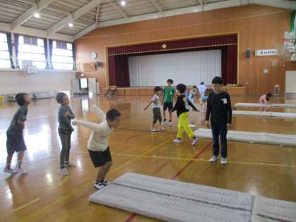 もうすぐ新体力テストを行います。それに向けて、運動委員会の5,6年生が「立ち幅跳び」「反復横跳び」「ソフトボール投げ」の講座を開いてくれました。こうしたらいいよという、やり方だけでなく、もっと良くなるよ!というアドバイスもしてくれました。それをもとに、楽しく練習する3年生でした。