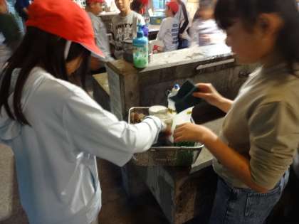 野外炊事の後片付けは大変ですが,みんなしっかりと頑張りました!