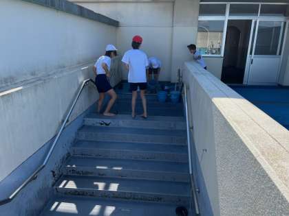 水泳学習に向けて、6時間目に、6年生がプール掃除をしてくれました。