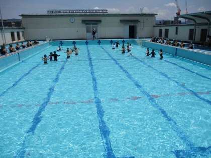 小学校で初めての学習のなので着替える方法、移動の仕方、準備運動の仕方、足洗いや腰洗いやシャワーの仕方、プールサイドのきまり、バディの組み方やバディでの健康状態の確認の仕方、入水や退水の仕方などたくさんのことを子どもたちは学びました。