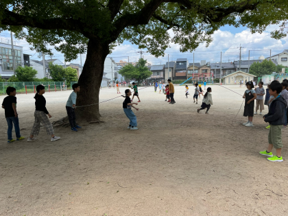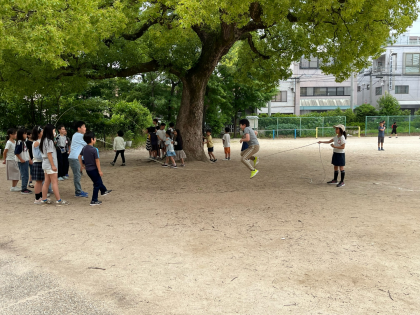 先週、「スポーツチャレンジ」の取り組みで大繩にチャレンジしていました。八の字で飛ぶ楽しさを感じた子たちが、休み時間に引き続き大繩に取り組んでいます。「苦手だな」と思っていた子がすすんで参加している姿もありました。「今!」「がんばれ!」応援の声が飛ぶ中、気が付くとみんなが上手に跳べるようになり、最後は自然と拍手し合いました。