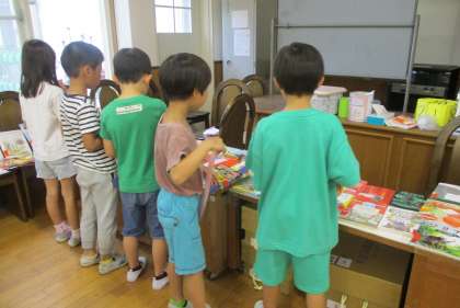 子どもたちは最新の本を手にとりながらとてもわくわくした様子で選んでいました。