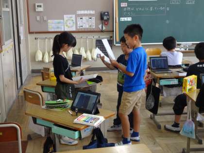 2時間目の3年2組では、理科「植物の育ちとつくり」の学習をしていました。ホウセンカとヒマワリについて、観察してわかったことを交流していました。