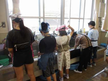 花背山の家のグループでの今回の調理実習。宿泊学習で学んだことを生かし、片付けもてきぱきと協力してできていました。