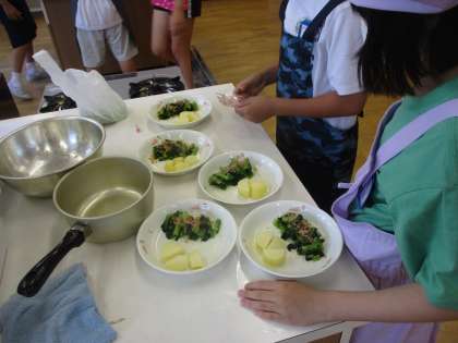 5年になって、本格的な初めての調理実習を行いました。