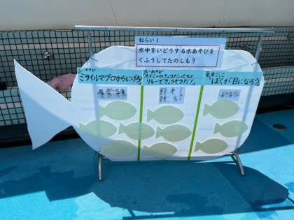 国語科で学習した「スイミー」の世界で、様々な水あそびをしました。