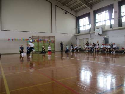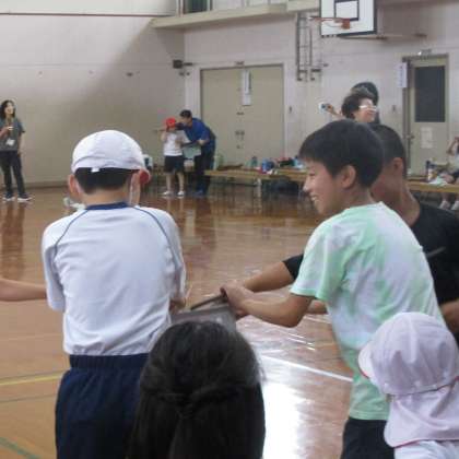 今日は支部育成合同運動会を朱雀第六小学校で行いました。じめっとした湿気を吹き飛ばすような、元気いっぱいの子ども達。準備体操のダンスを踊ったあと、「シュートしてゴール」「中京動物園を作ろう」の2種目に参加し、それぞれがんばってきました!「中京動物園を作ろう」では、朱雀第六小学校の友達と協力してカゴを持ちながら、リレーをすることができましたね。