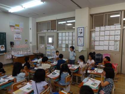 指名されたら「はい」と返事をしたり、発表している人の方を向いて話を聞いていたり、「〇〇さんと同じで、〜です」などの話型を使って発表していたりと、しっかりと成長している姿を見て、うれしく思いました!