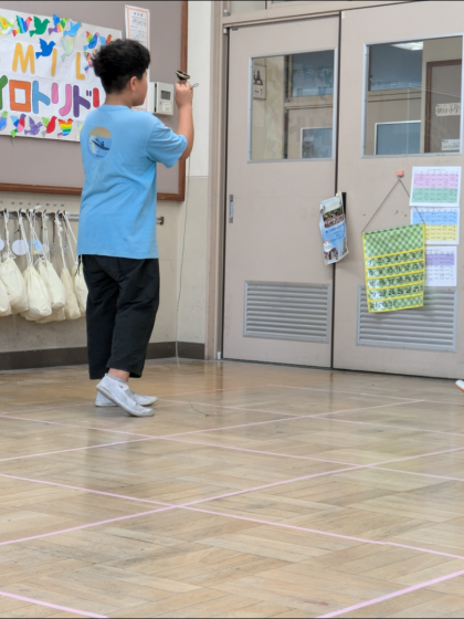 「みんながさらに仲良くなれるように」という目的で学活を行いました。遊び係、出し物係、クイズ係がそれぞれ企画を考えたり、飾り係が黒板をきれいにデコレーションしたり、新聞係がプログラムを書いたりと、係を中心に計画、運営しました。オープニングではコマが得意な人が素晴らしい技を披露してくれて、拍手喝采でした。
