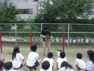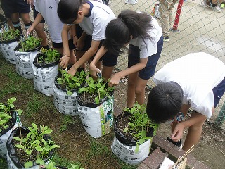 さんさん学習で育てている大根のまびきをしました。種を植えてから1週間ほどで大きく出てきた芽をどれがいいか考えながらまびきを行うことができました。