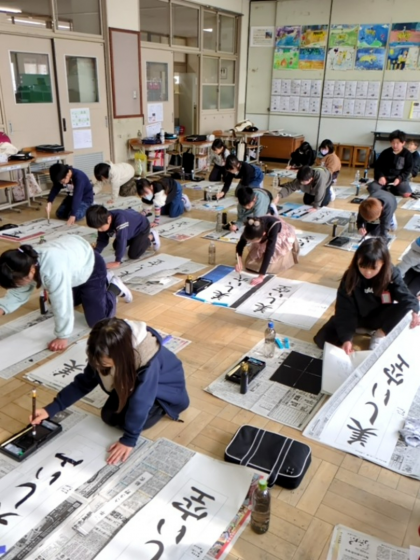 みんな、お手本を見て一画ずつ気持ちを込めて書いていました。