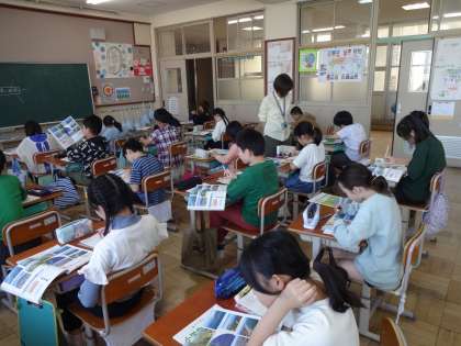 6時間目の5年1組では、社会科「国土の地形の特徴」の学習をしていました。資料から、日本の地形の様子について調べてマインドマップにし、単元の学習問題について考えていっていました。