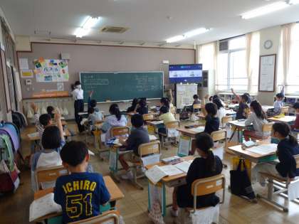 2時間目の3年2組では、算数科「わり算」の学習をしていました。自分で考えた方法を友達と交流し合い、いろいろな考えに触れながら学習を進めていました。