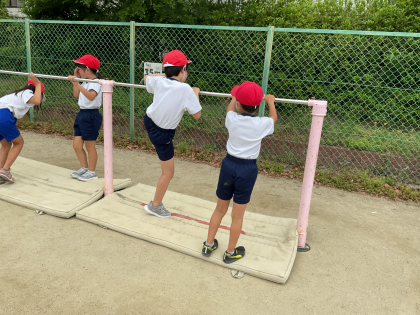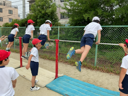 「生まれて初めて逆上がりができた!」という喜びの声が聞こえたり、「○○さんは連続技ができるから、教えてもらおう」と、友達に技を見せてもらう姿が見られたりしています。