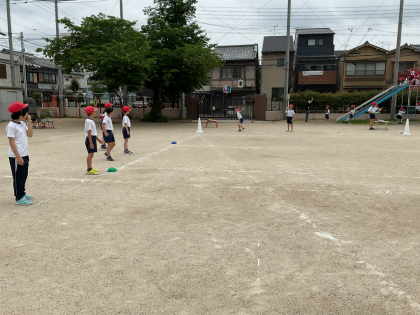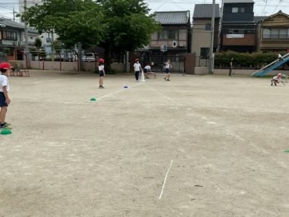 遠投では、短い助走を付けたり、腕を大きくふりかぶったりと、だんだんと遠くまで投げるコツを掴めてきました。