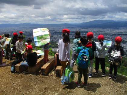 3年生では今、社会の学習で「京都市の様子」を学習しています。今回の社会見学では、「大文字山の上から京都市を見て、学習に生かす。」というめあてに向かって、大文字山の上から見た京都市と地図を見比べる学習をしました。子どもたちは、「バスから見えた鳥居だ!」「京都タワーも見える!」「あそこはマンションがいっぱいだね」など、気づいたことを友達と話していました。楽しかったで終わるのではなく、しっかりと学習している姿に感心しました。