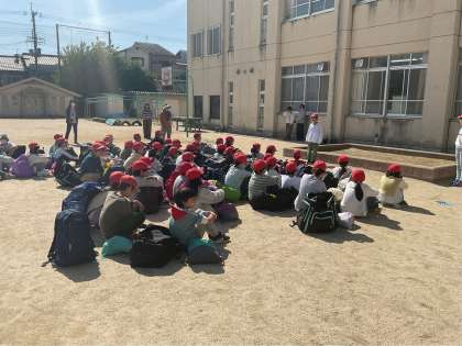 晴天の中、花背山の家宿泊学習の出発式を行いました。