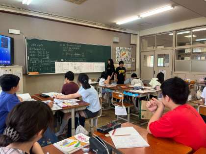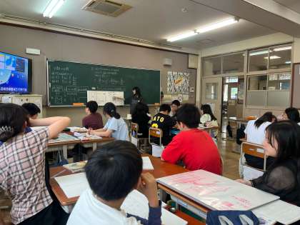 問題を読んで、式を考えました。式の考え方をグループで話しあい、みんなに説明することができました。