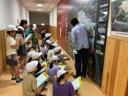 積極的に質問したり、お話を聞いて「そうか!こことここが繋がって煙突に煙がいくのか」と、ごみ処理の仕組みを理解したりする姿を、「さすてな京都」の職員さんがほめてくださいました。