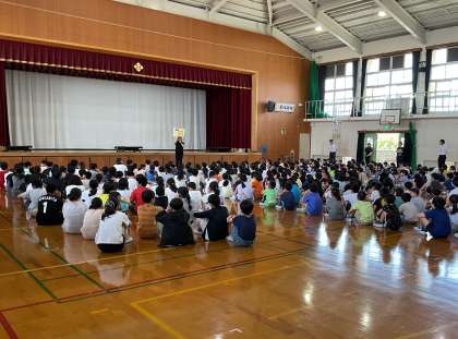警察署の方が、子ども達に、「子ども110番の家」や「いかのおすし」の話をしてくれました。また夏休みが近づいてきているので夏休みの過ごし方についても話をしてくれました。
