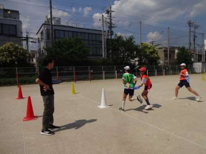 昨日に引き続き、今日も京都市小学校体育研究会の先生方が来校し、授業を参観しました。今日は6年2組のタグラグビーの授業を参観し、11月7日にある近畿小学校体育研究大会に向けて様々な助言をしてくださいました。