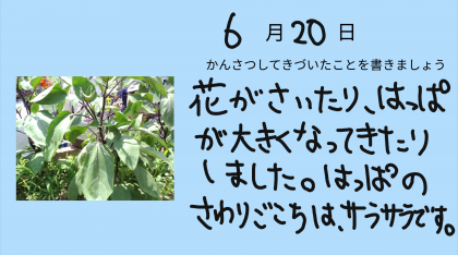 今週は天候に恵まれ、水やりを頑張りました!なすは、そろそろ収穫できそうです。