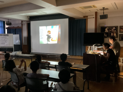 感想を聞くと「この場面が面白かった」「くもパンのお話がかわいかった「このお話のシリーズ作品も読みたい」「もし自分だったら、島ひきおにと遊びたい」と、たくさん発表していました。最後は、地域の読み聞かせをしてくださっているみなさんに、感謝の気持ちを込めて拍手をしました。