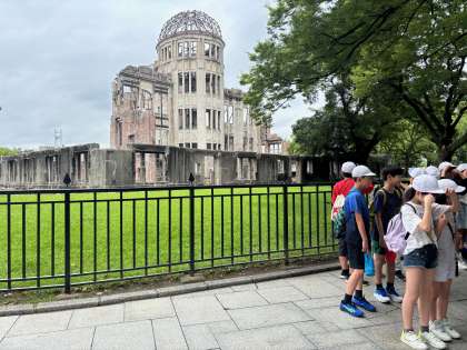 まずは原爆ドーム前でクラス写真を撮ります。