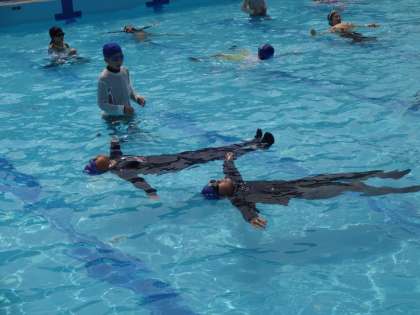 衣服を着ていると泳ぎにくいこと、万が一の時は浮いて救助を待つこと、ペットボトルが命を守る大事な道具になること、などについて学んでいました。