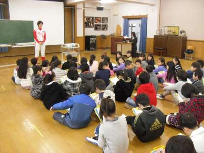 4年生のみんなはグラウンドにてバッティングを指導してもらいました。担任の先生たちも奮闘し、最後は田口選手のホームランを見せてもらいました!皆様、京都フローラをぜひ応援しましょう!