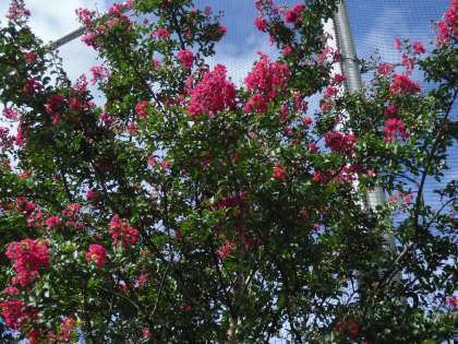 学校東側に「サルスベリ」の木があります。漢字で書くと「百日紅」。名前の通り鮮やかな紅色を見せてくれています。学校に来られたときには,ぜひ一度ご鑑賞ください。