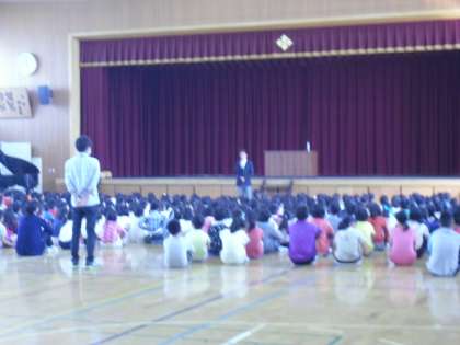 今日は前期の終業式です。最近の話題であるノーベル賞を受賞された大村博士の話を子どもたちにしました。失明する病気から守る薬を作り,無償で配布していること,何か人の役に立ちたいと常に考えておられることなどを話し,みんなも周りの人の様子をよく見て,人の力になれる人になってほしいとの願いを伝えました。