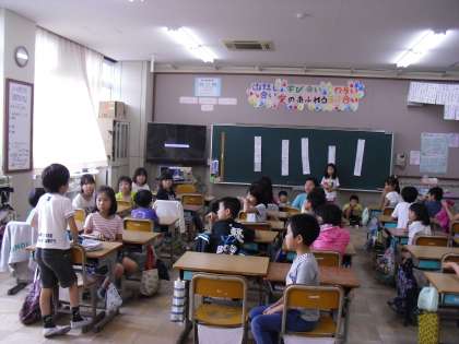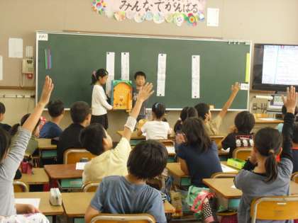 今日は2年生が各教室に分かれてスピーチをする「くすのきタイム」です。自分たちが作った「動くおもちゃ」について発表しました。材料,作り方,遊び方,苦労したところ,工夫したところなどをしっかり覚えてスピーチすることができました。それに対する感想や質問も多く寄せられ,有意義な時間になりました。