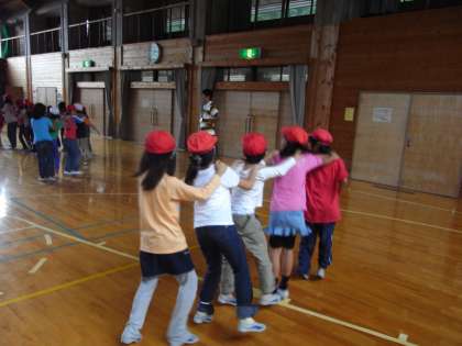 フォークダンスでは,男女で組になってやりました。みんな仲良く楽しくできました。また,ジェンカも楽しくできました。