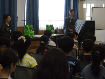 5年生が「公衆電話教室」の授業を受けました。171の災害電話伝言サービスについてお話を聞き,公衆電話のかけ方も学習しました。49名の5年生のうち,公衆電話をかけた経験のある児童はわずか3名でした。(びっくり!)
