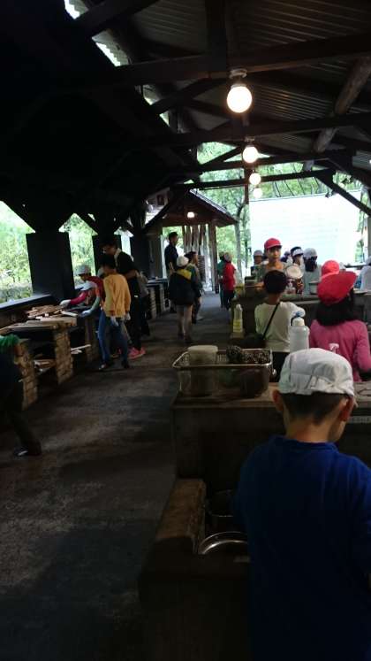 1日目の夕食は野外炊事を行いました。自分たちで火をおこし,ご飯を炊いたりすき焼き風煮を作ったりしました。学校で練習した甲斐もあったのか,どのグループもおいしい夕食ができ上がり,みんなで美味しくいただきました。