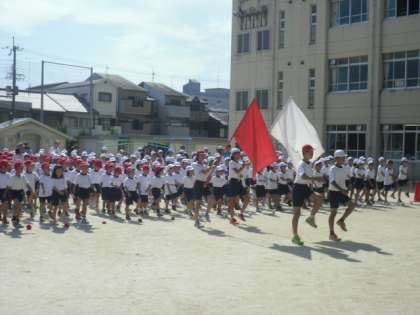 「今日から9月!」とは言っても暑い日差しの中,本日1回目の運動会全校練習を行いました。
