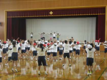体育館では,全校ダンスの練習が行われています。今年の全校ダンスは,例年にも増して様々な動きが入っていて楽しいです。今日は低学年の練習日でしたが,来週は,中・高学年も休み時間に練習します。早く振り付けを覚えて,みんなでリズムに乗ってダンスできるようにしたいです。