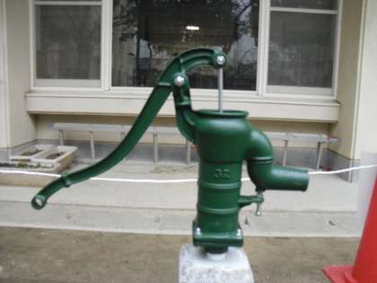 ランチルームの外側に,井戸のポンプの跡が残っており,何年間もそのままになっていました。専門の方が調べたところ,「まだ使えますね。」とのこと。ポンプ部分を新調し,新年度から水やりに活用することになりました。子どもたちには3月になったら実際に触れてもらうつもりです。