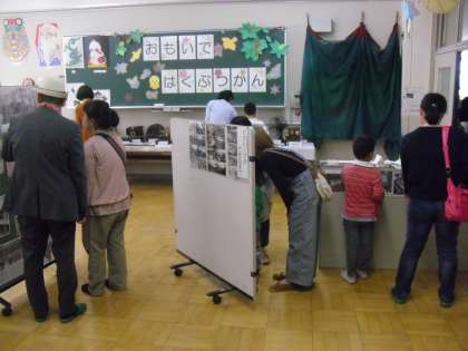 本日オープンしました『おもいで博物館』は,たくさんの方に見て回っていただいきました。なつかしい昔の道具や昔の朱三の写真を見ながら,「こんな道具を使っていたなぁ」「自分が子どもの頃に通っていた朱三小や」などと,思い出に浸っていただけた方もおられたのではないでしょうか。今日,機会がなかった方は,次回のご来校時にでも,ぜひご覧ください。