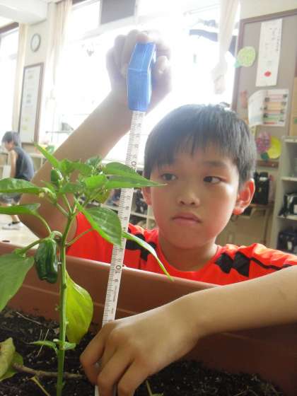 トマトづくりをする5年生の様子です。
