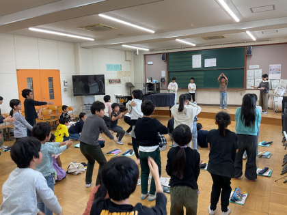 11月は学年合同音楽会を開きました。「もみじ」の二部合唱と「オーラリー」のリコーダー演奏をクラスごとに発表して聞きあいました。もみじの二部合唱は、お互いのパートの音程につられそうになる難しさがあるのですが、どちらのクラスも伸びのある歌声で楽しそうな表情で歌っていました。聞きあったあとには、「涙が出そうなくらい感動した」と感想を発表してくれた人もいました。また、毎時間取り組んでいるリズムゲームも大盛り上がりでした!