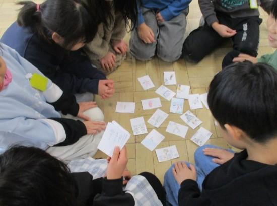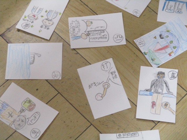 国語の学習で、漢字の音と訓の両方を使い、かるたをつくりました。