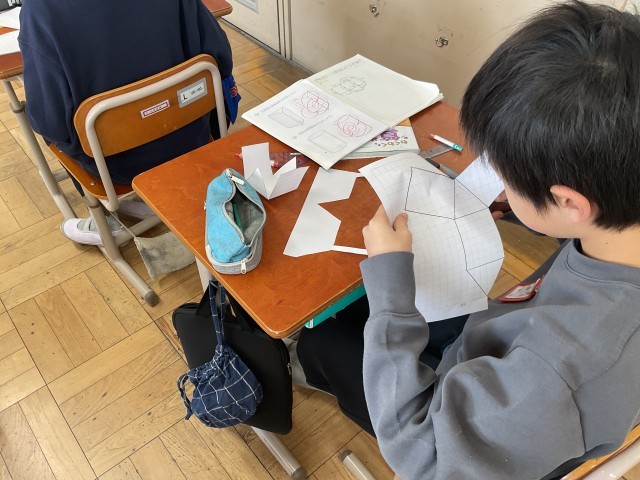 展開図をかいたと、組み立てて三角柱になるかを確認しました。