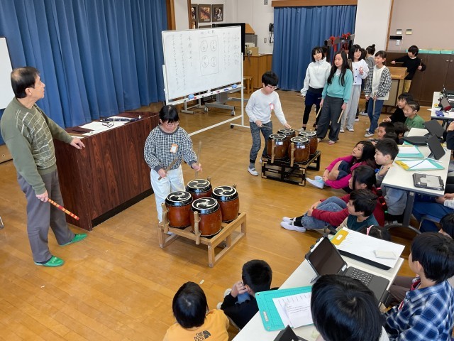知っている児童もいましたが、詳しく歴史、始まり、楽器などのお話を聞かせていただきました。