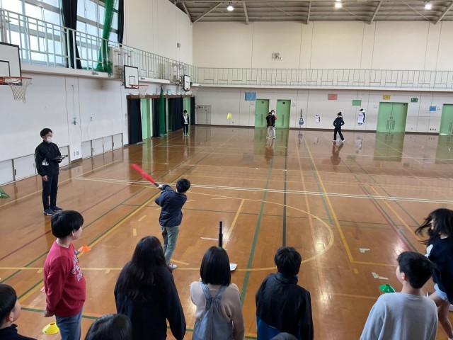 中間休みに、運動委員会主催、ホームラン大会が開催されました。
