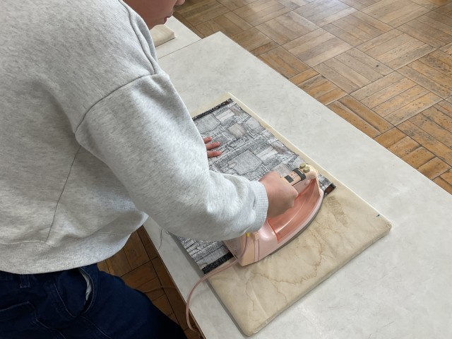 アイロンをかけたり、まち針を打ったり、ミシンで縫ったり、それぞれの工程を丁寧に取り組んでいます。